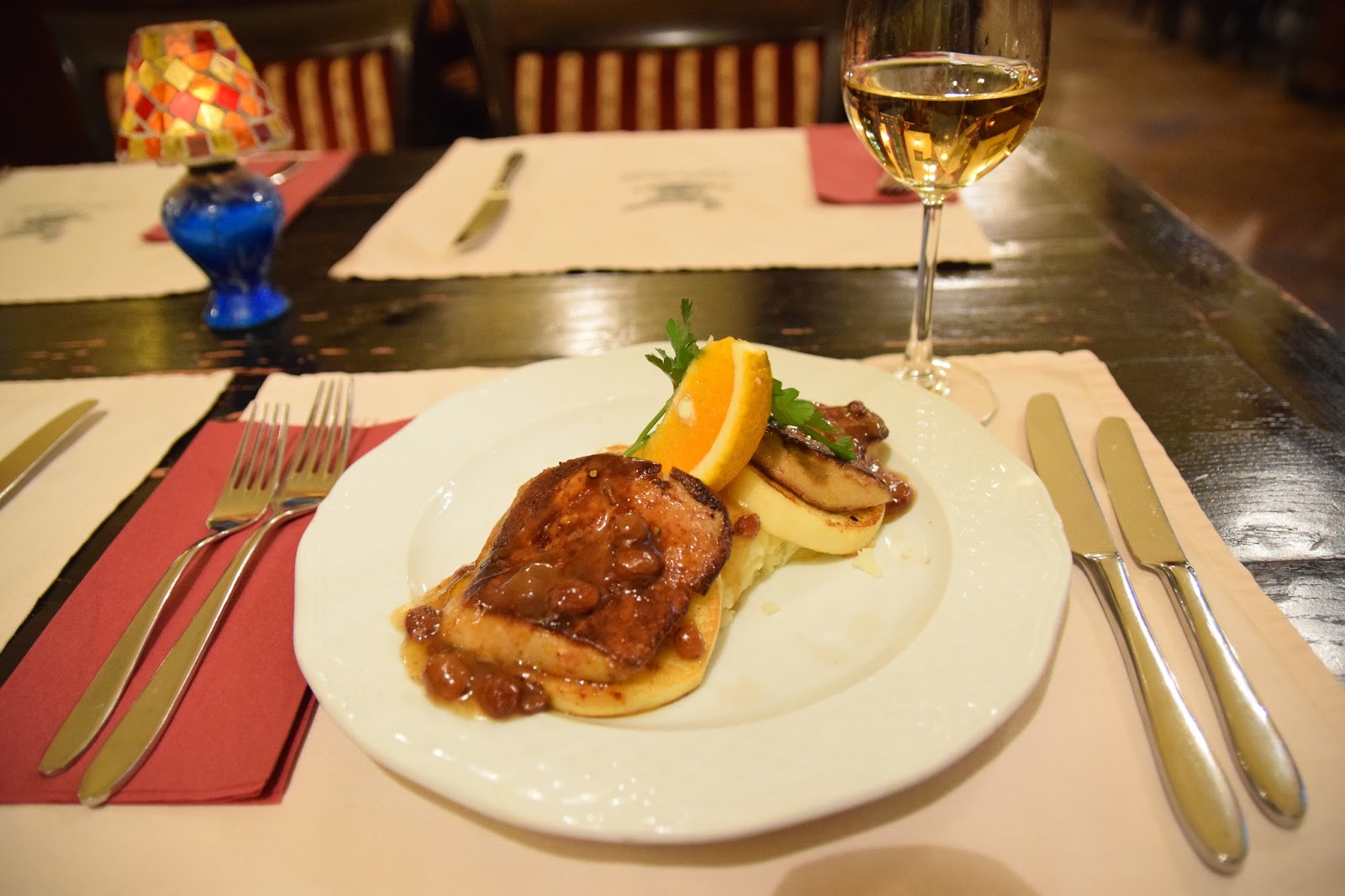 "Жемчужина ресторана — меню Evolution — авторское прочтение национальной венгерской кухни. Выбирайте: оленина со свеклой и кровянкой или барбекю с молодой морковью. В винной карте больше двухсот наименований, но завершить идеальный вечер бокалом токайского –– святое дело"